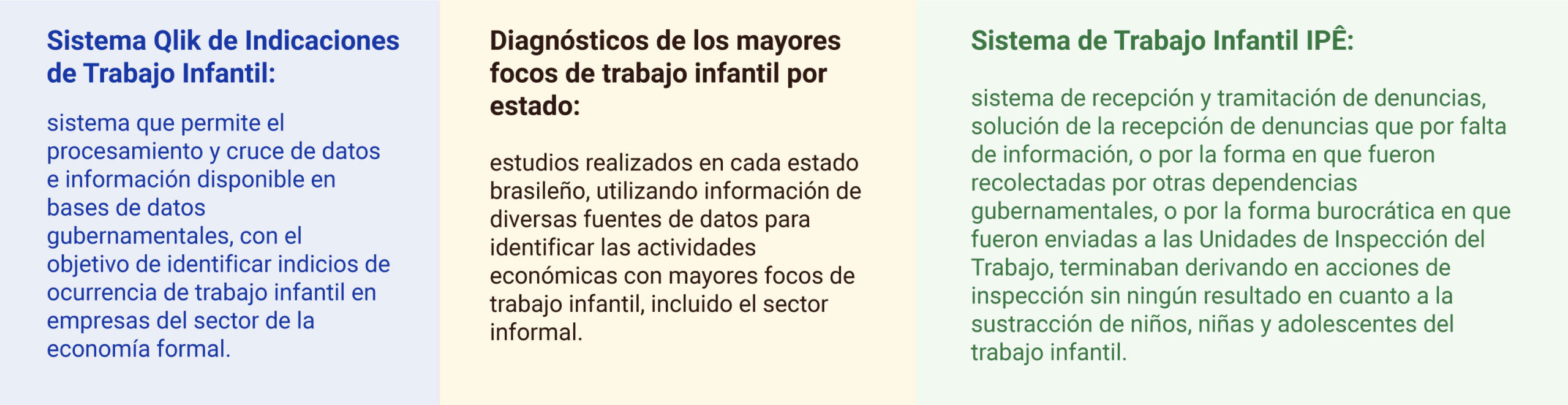 A partir del desarrollo de estos cuatro pilares, se establecieron nuevas herramientas y estrategias de inspección, que se detallan a continuación, que actualmente orientan el desempeño de la Inspección de Trabajo brasileña en la lucha contra el trabajo infantil.