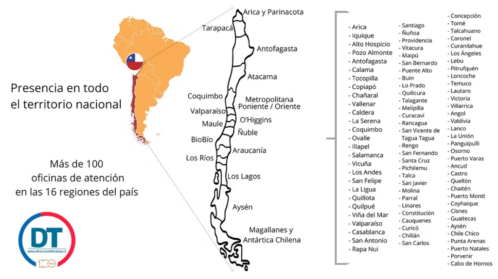 La Dirección del Trabajo es un servicio público descentralizado, con personalidad jurídica y patrimonio propio. Está sometido a la supervigilancia del Presidente de la República a través del Ministerio del Trabajo y Previsión Social, y se rige por su Ley Orgánica (D.F.L. Nº 2, del 30 de mayo de 1967) y el D.L. Nº 3.551 de 1981.