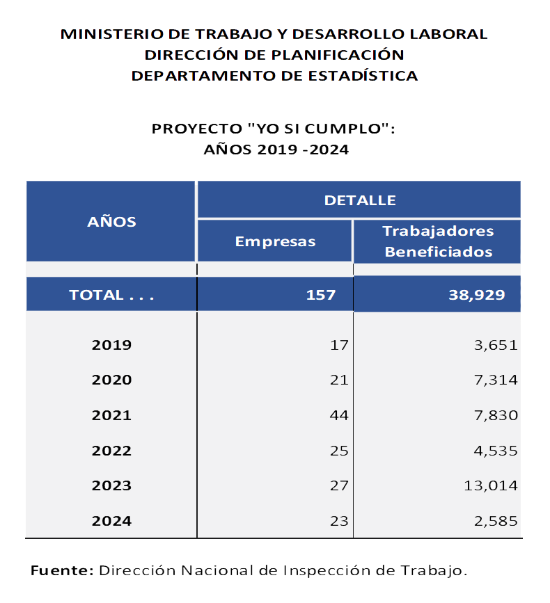 Para efectos de la Prevención y la Promoción, la Dirección Nacional de Inspección de Trabajo tiene un programa institucional denominado “YO SI CUMPLO”. Este programa promueve la aplicación dentro de los centros de trabajo de las buenas prácticas laborales, no sólo el cumplimiento de la norma, sino desde la óptica de la salud y seguridad en el trabajo, manteniendo parámetros básicos como el respeto a las políticas de género, la inclusión de personas con capacidad reducida en la fuerza de trabajo, el cumplimiento de las reglas sobre trabajo infantil y protección del adolescente trabajador, entre otros.