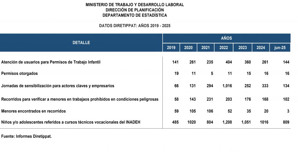 Programa de acción directa gubernamental para prevenir y erradicar el trabajo infantil, el cual es una estrategia metodológica de atención integral dirigida a niños(as) y adolescentes en condición de trabajo infantil y/o en riesgo de explotación laboral, el cual ha beneficiado durante los años 2009-2023 a 16,323 niños(as) y adolescentes en todas las provincias y comarcas.