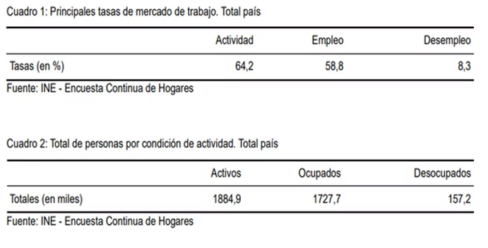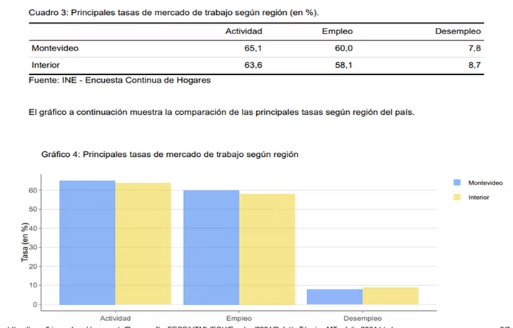 - En julio del 2024 las tasas de actividad, empleo y desempleo a nivel global (i.e. a nivel país) se situaron en 64,2%, 58,8% y 8,3% respectivamente. La línea que intersecta las barras de cada una de las visualizaciones representa la estimación de cada tasa global.